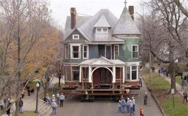 能整棟搬家用汽車運(yùn)走,這和他們房屋的結(jié)構(gòu)是分不開的。美國(guó)人很多房子都是木質(zhì)結(jié)構(gòu)。搬家的時(shí)候,先把東西用木紙箱打包好,然后將房子整棟一次性搬走。